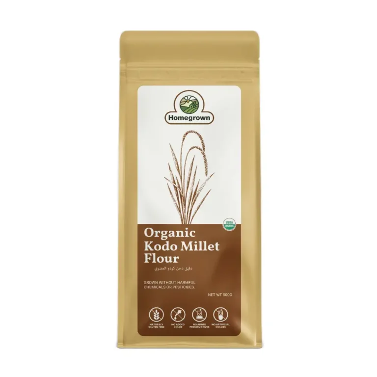 HG Organic Kodo Millet Flour is a rich source of protein and fiber. This gluten-free flour is ideal for making rotis, parathas, and porridge.
